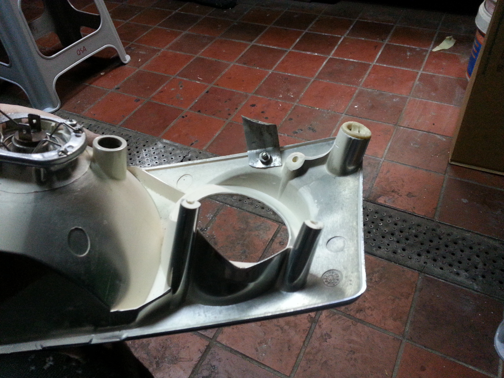 Nowe otworki w projektorze pod rozstaw audi i gotowe: